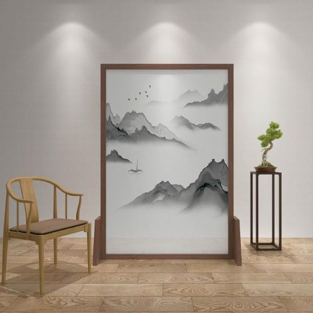 屏風 玄關 實木 屏風架 客廳屏風 移動座屏 實木屏風隔斷 玄關風水 新中式半透明不透座屏 隔斷屏風 簡易屏風