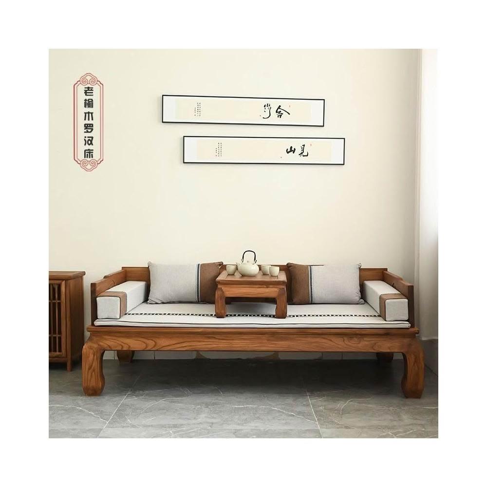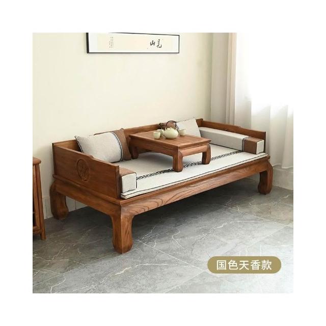 榆木羅漢床新中式客廳沙發實木臥榻雕花仿古貴妃榻禪意兩用小戶型