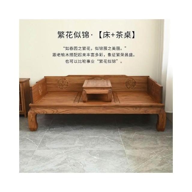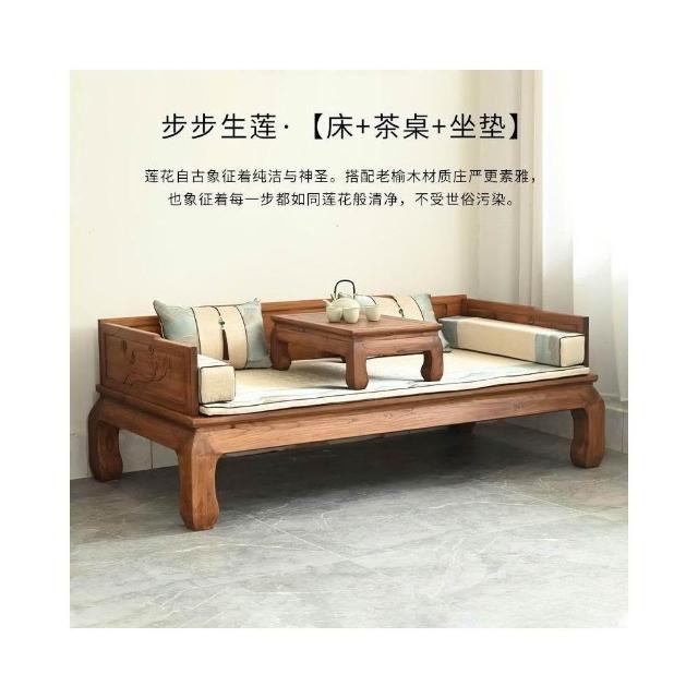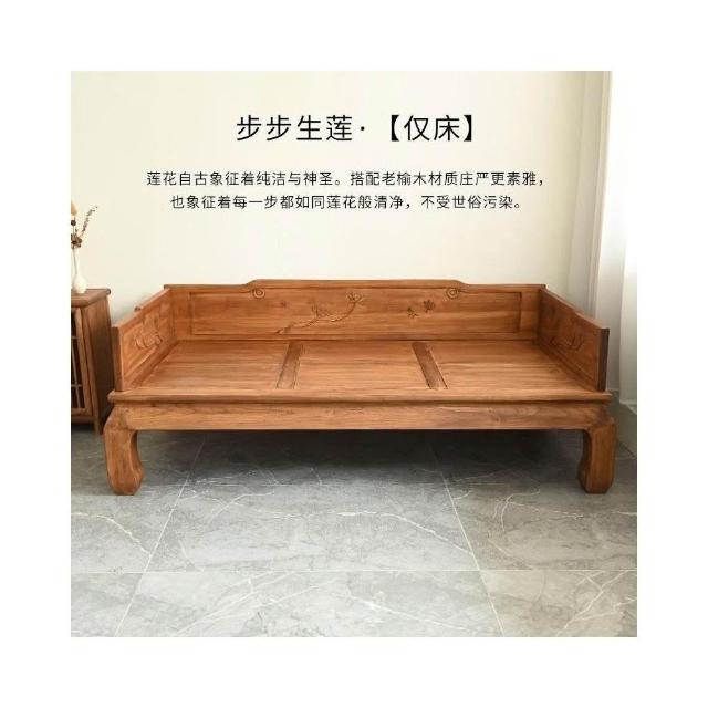 榆木羅漢床新中式客廳沙發實木臥榻雕花仿古貴妃榻禪意兩用小戶型