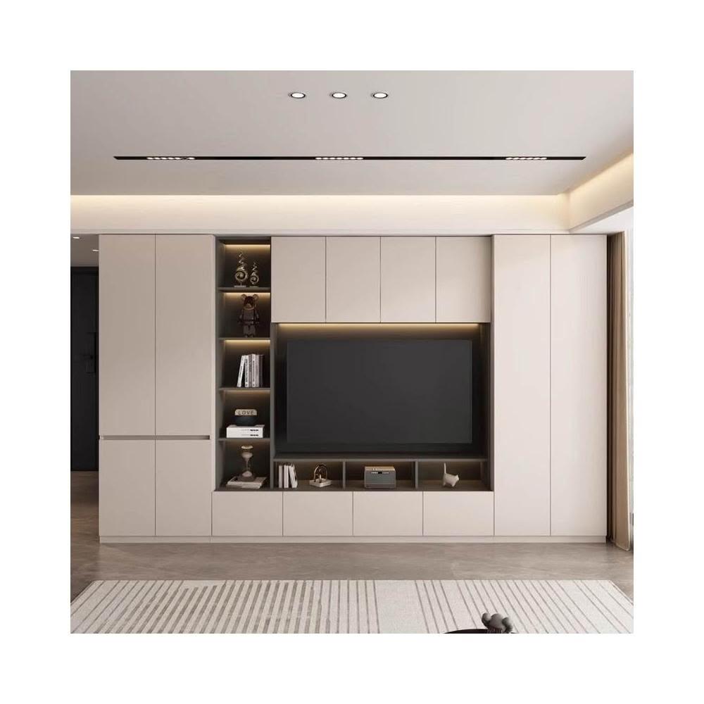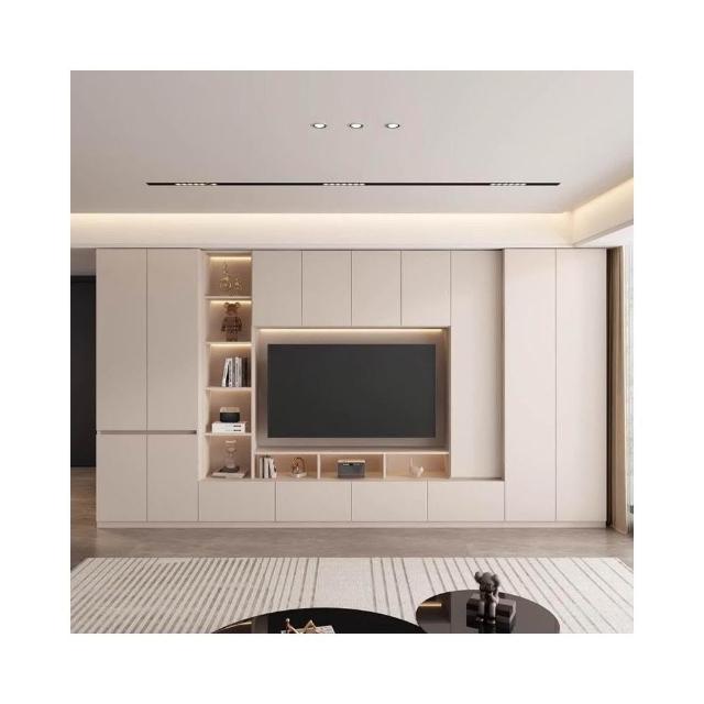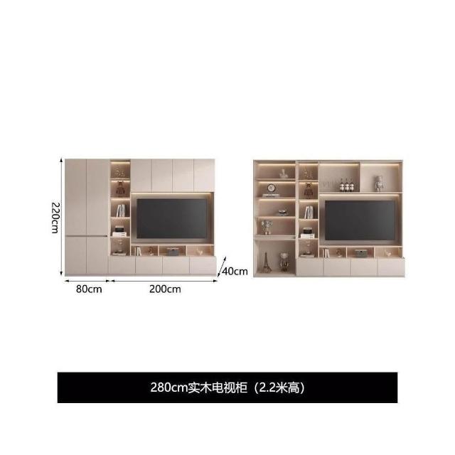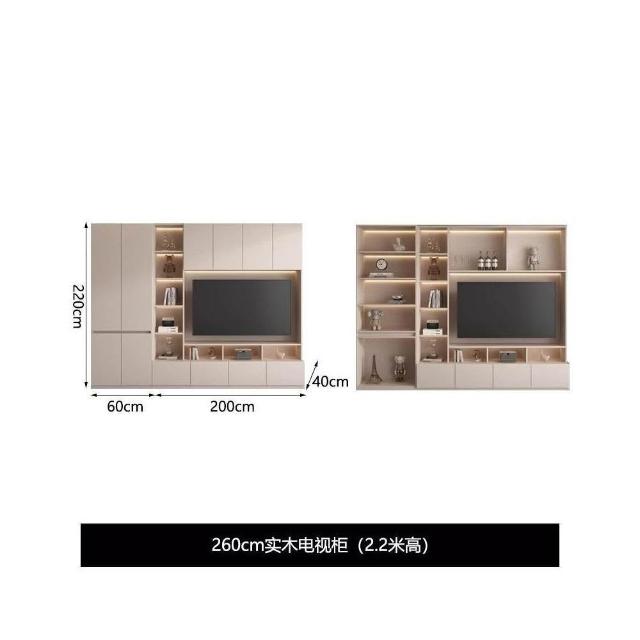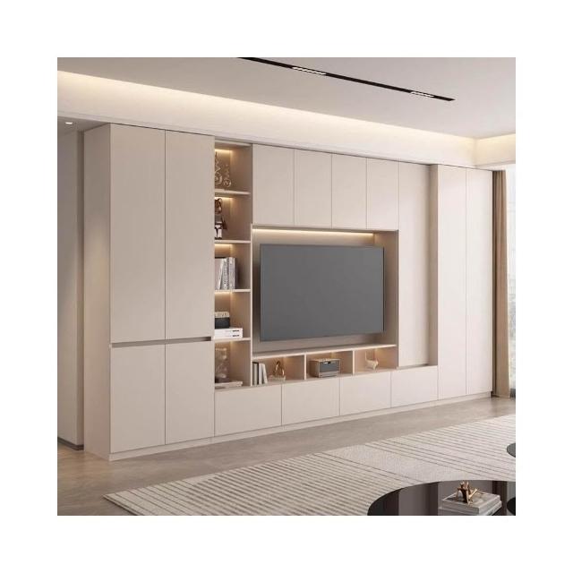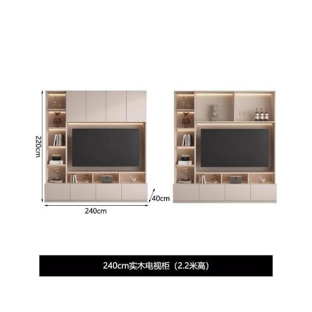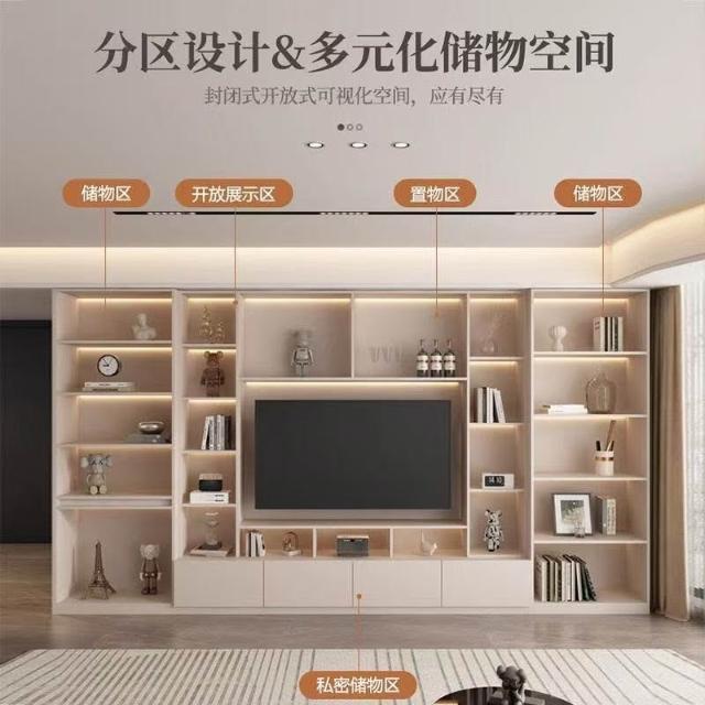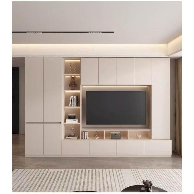輕奢背景牆電視櫃一體組合櫃簡約現代客廳實木滿牆儲物櫃高櫃定制
