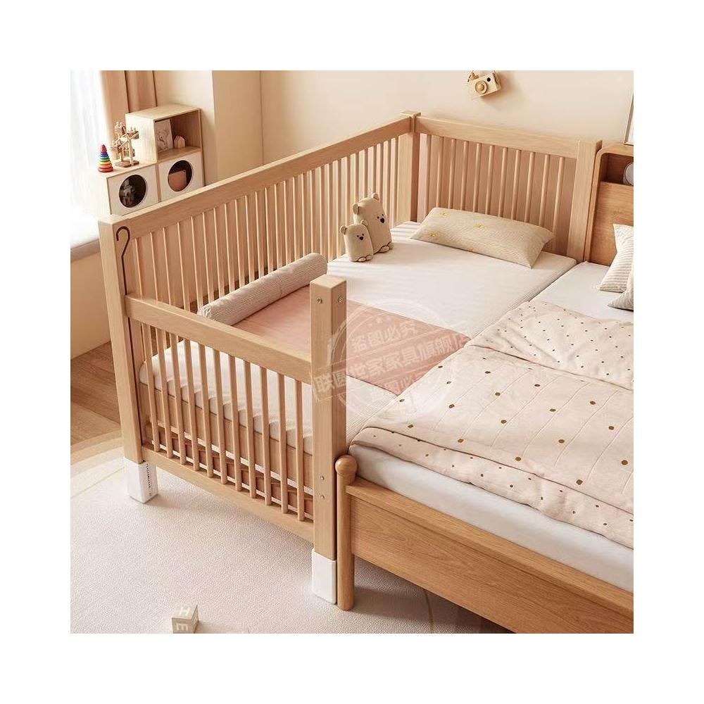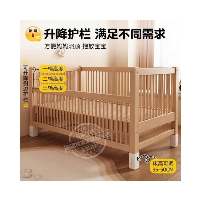 全櫸木兒童拼接床可升降實木嬰兒床寶寶小床邊床兒童床