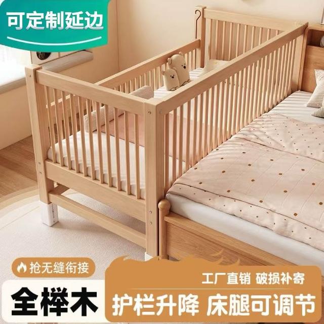 全櫸木兒童拼接床可升降實木嬰兒床寶寶小床邊床兒童床