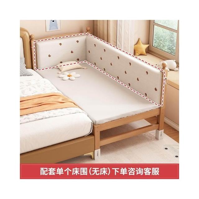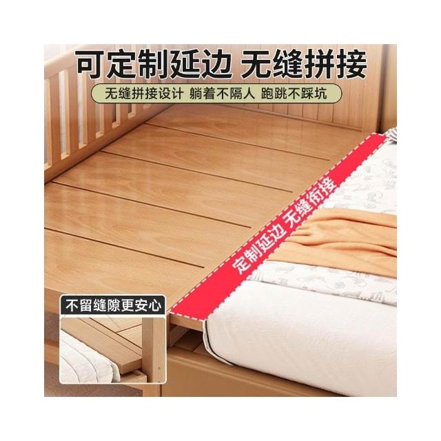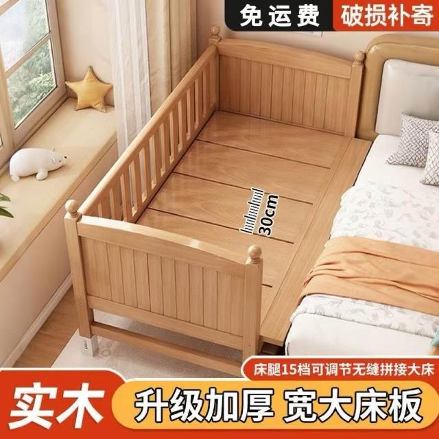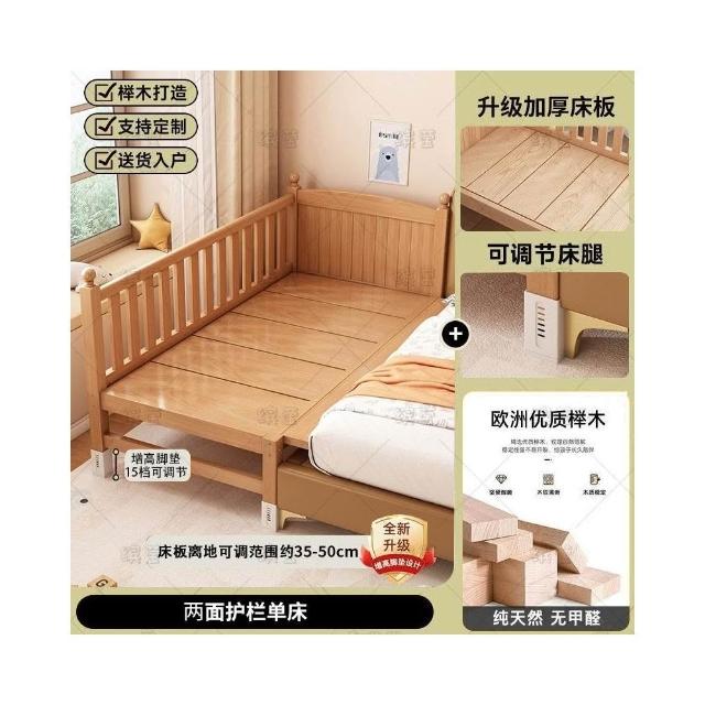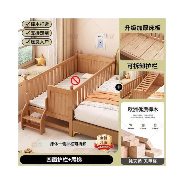 櫸木兒童拼接床可調節兒童床加高護欄大床邊加寬寶寶床實木嬰兒床