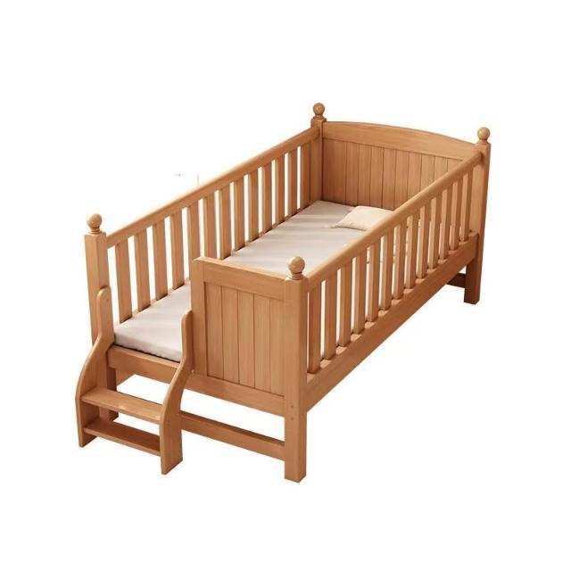 櫸木兒童拼接床可調節兒童床加高護欄大床邊加寬寶寶床實木嬰兒床