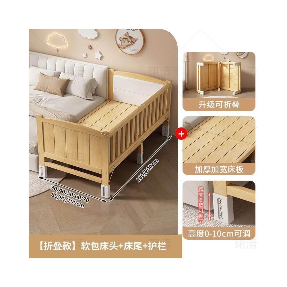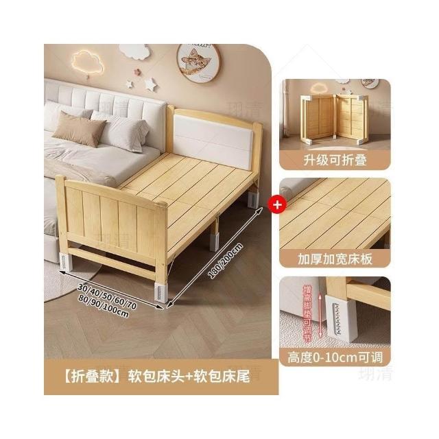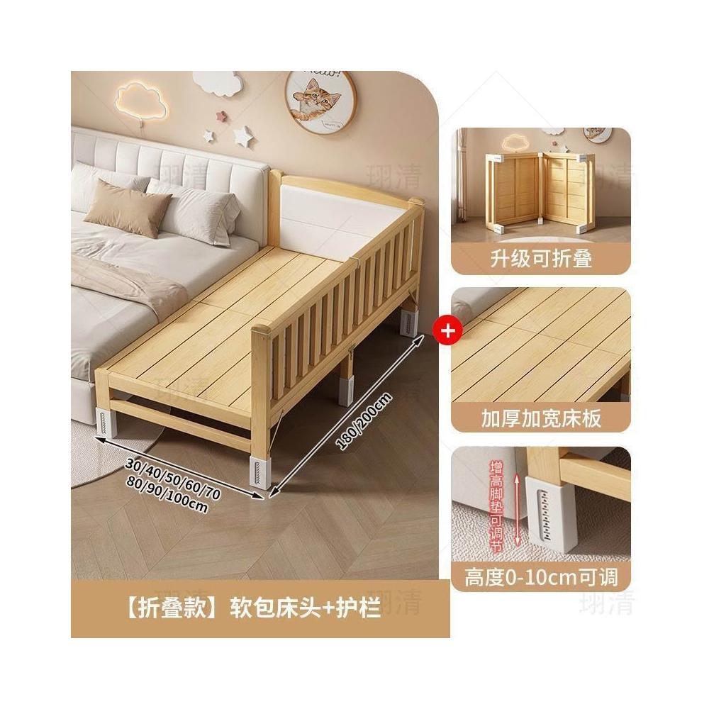 實木可折疊兒童床帶護欄床邊加寬小床實木床嬰兒床定制單人拼接床