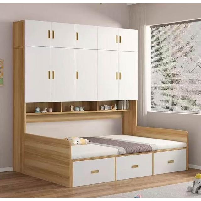 榻榻米小戶型床櫃一體組合衣櫃書桌實木兒童床多功能臥室衣帽間