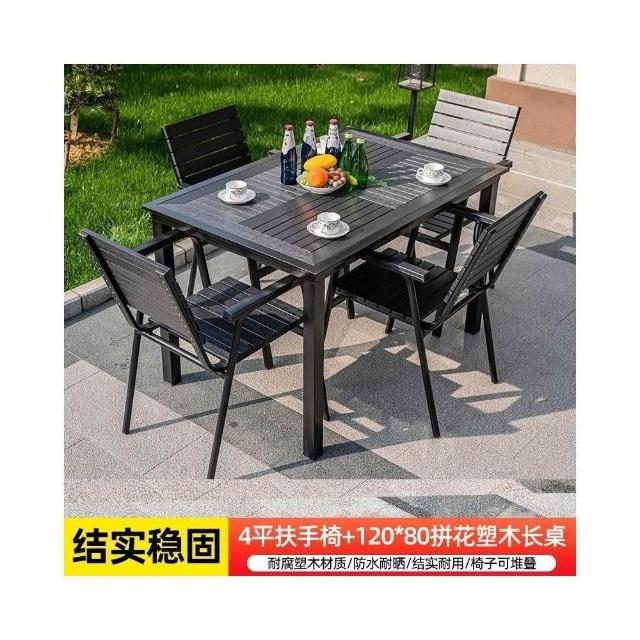 戶外塑木桌椅庭院防曬防雨花園家用休閒鐵藝桌椅咖啡廳