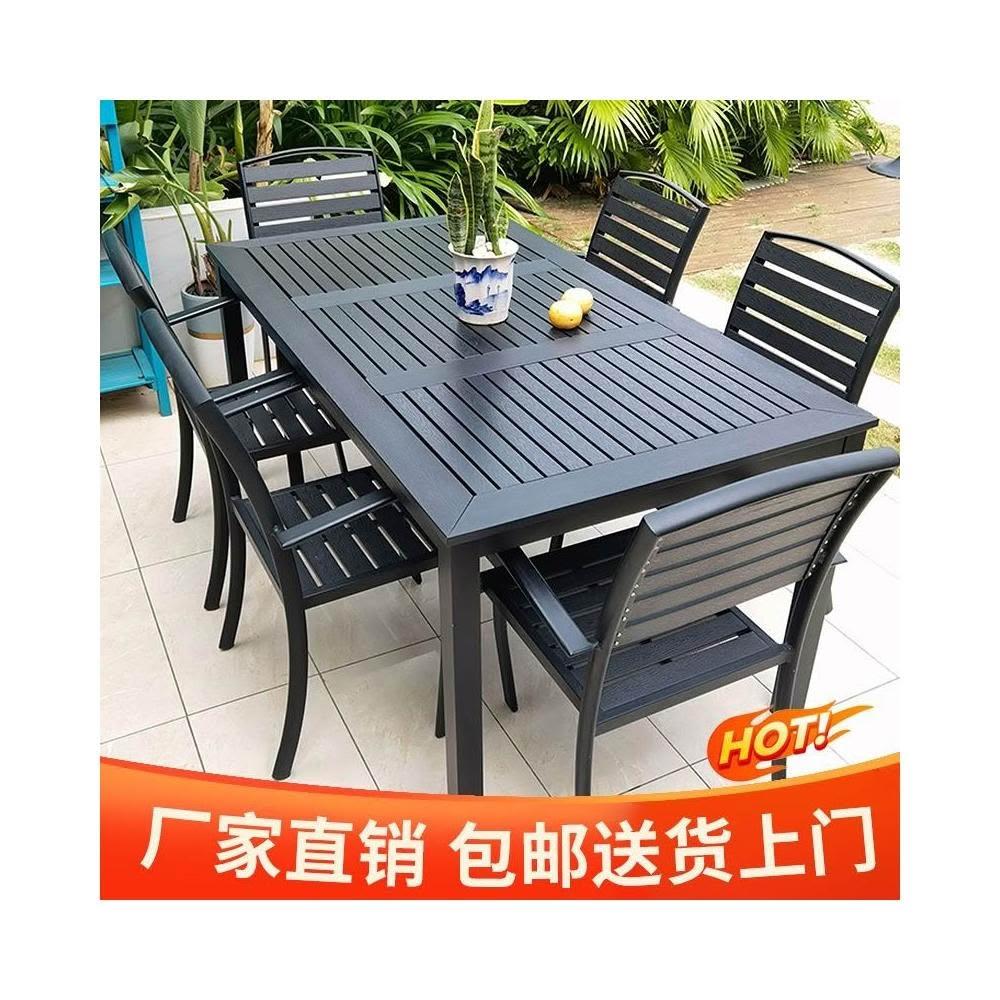 戶外塑木桌椅庭院防曬防雨花園家用休閒鐵藝桌椅咖啡廳
