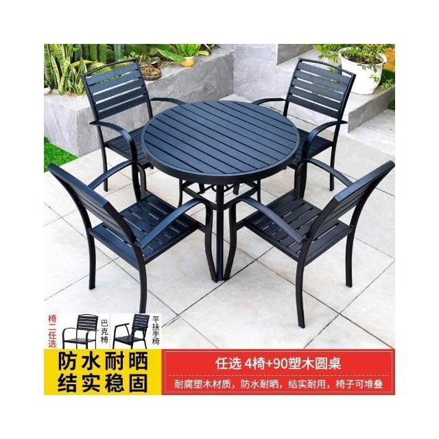 戶外塑木桌椅庭院防曬防雨花園家用休閒鐵藝桌椅咖啡廳