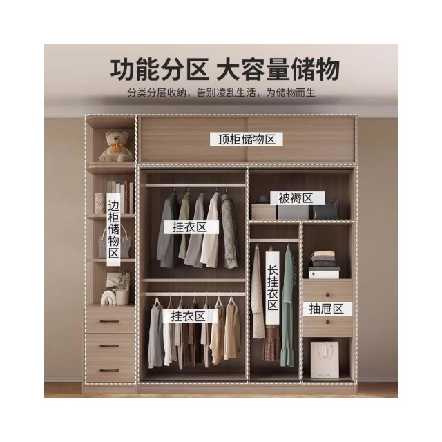 實木衣櫃 推拉門衣櫃 家用臥室現代簡約大衣櫥 衣櫃