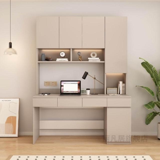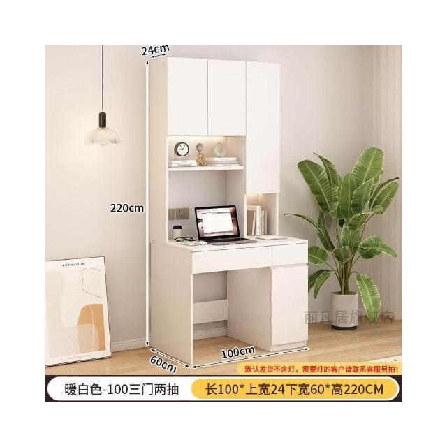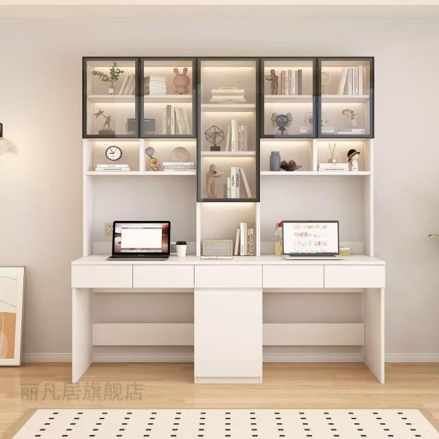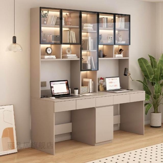 雙人書桌書櫃一體整牆實木電腦桌書架辦公桌工作臺學生臥室學習桌