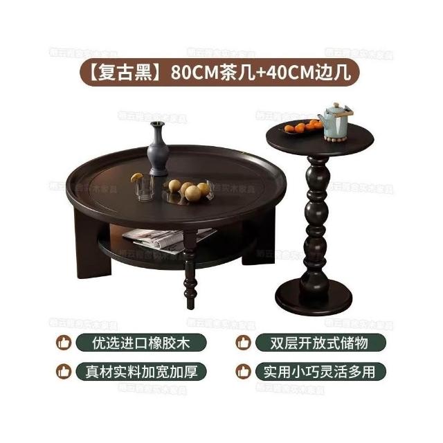 實木茶几露比圓形茶桌小戶型小桌子中古風家用客廳美式新款