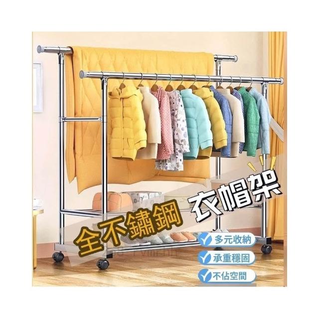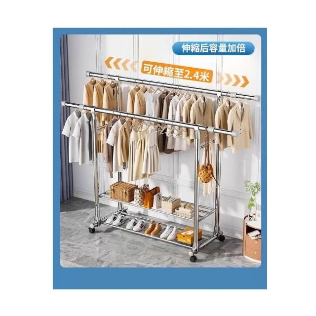 簡約家居 台灣現貨3日内達可伸縮掛衣架 巨粗25管超耐重 不鏽鋼落地掛衣杆衣帽架 可伸縮掛衣架 雙桿不鏽鋼曬被架