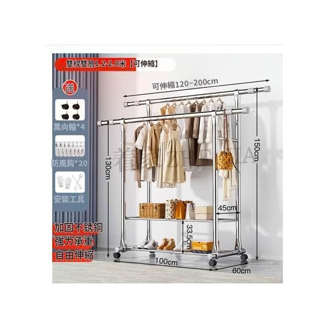 簡約家居 台灣現貨3日内達可伸縮掛衣架 巨粗25管超耐重 不鏽鋼落地掛衣杆衣帽架 可伸縮掛衣架 雙桿不鏽鋼曬被架