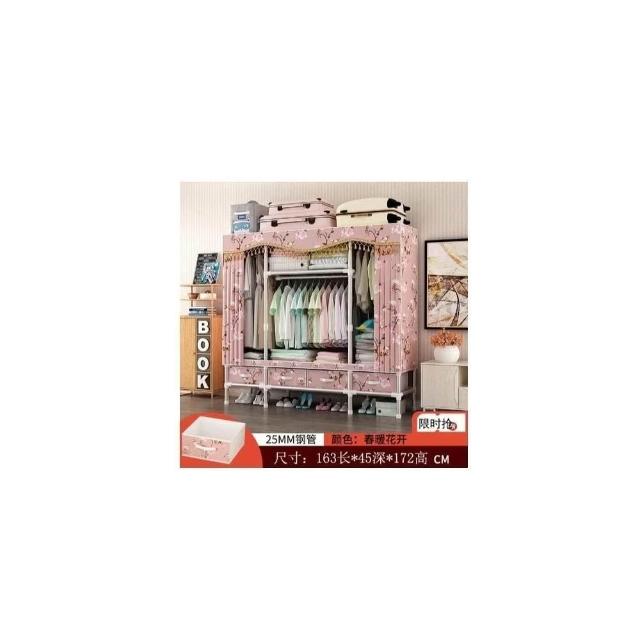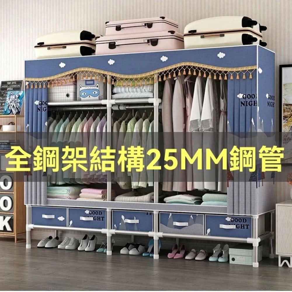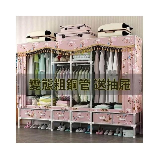簡約家居 台灣現貨3日内達簡易衣櫃 衣櫥 管徑25MM含布套 衣櫥含附抽屜 耐重衣櫃 布衣櫃 衣櫥 學生宿舍衣櫃