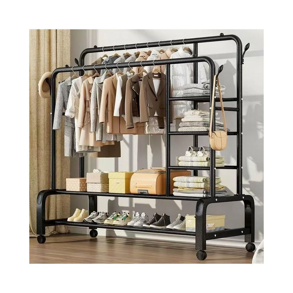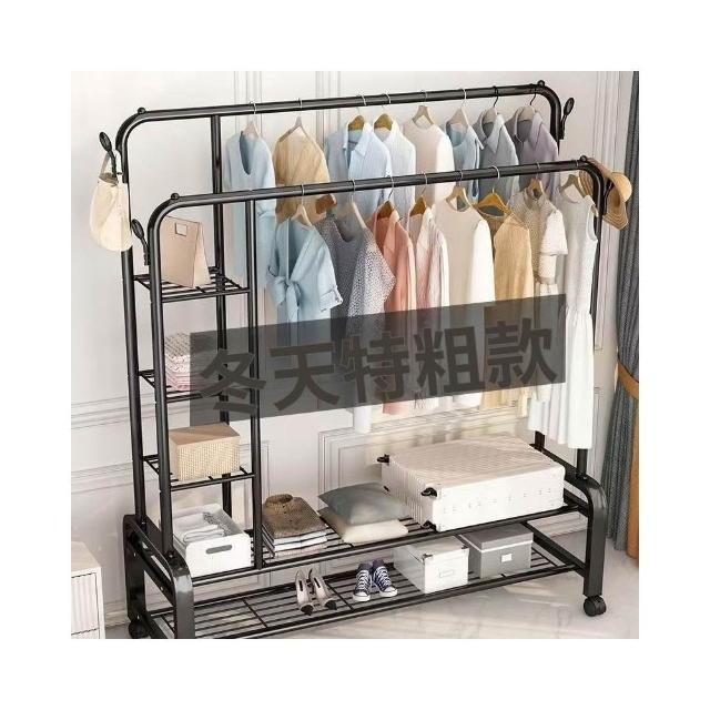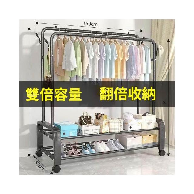 簡約家居 台灣現貨3日内達落地挂衣架 雙桿衣架 加粗雙排晾衣架 可移動曬衣架 帶輪挂衣架 衣櫃