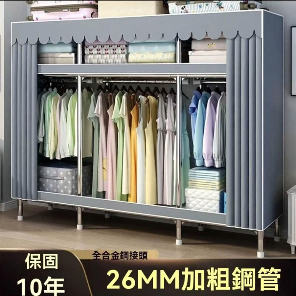 簡約家居 台灣現貨3日内達衣櫃 衣櫥 簡易衣櫃 超强耐重衣櫃合金接頭 管徑加粗26mm 佈衣櫃 出租屋衣櫃 學生衣櫃