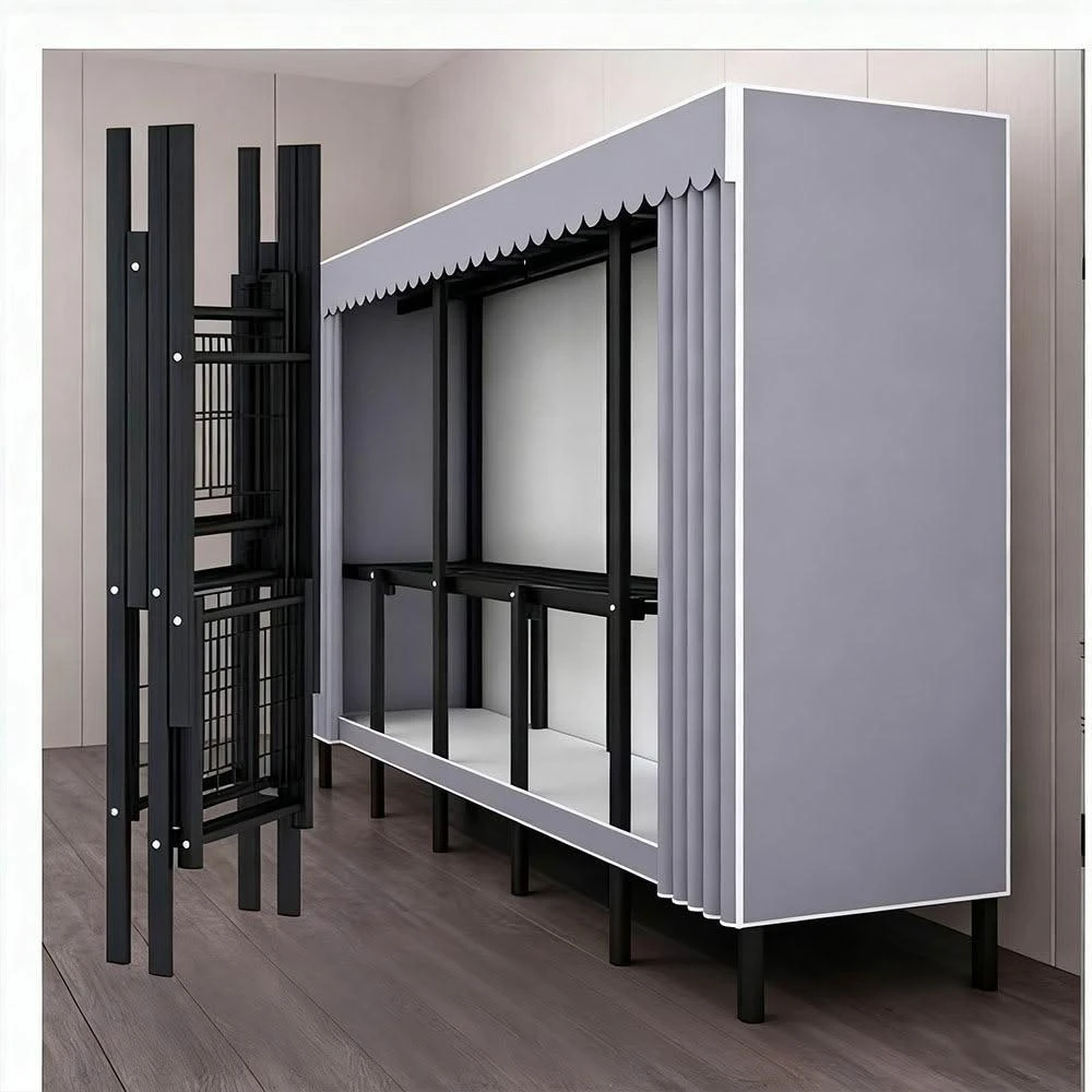 簡約家居 台灣現貨3日内達免安裝折疊衣櫃 加粗鋼管 帶滑輪可移動 家用臥室出租房簡易布衣櫃 結實耐用組裝掛衣櫥