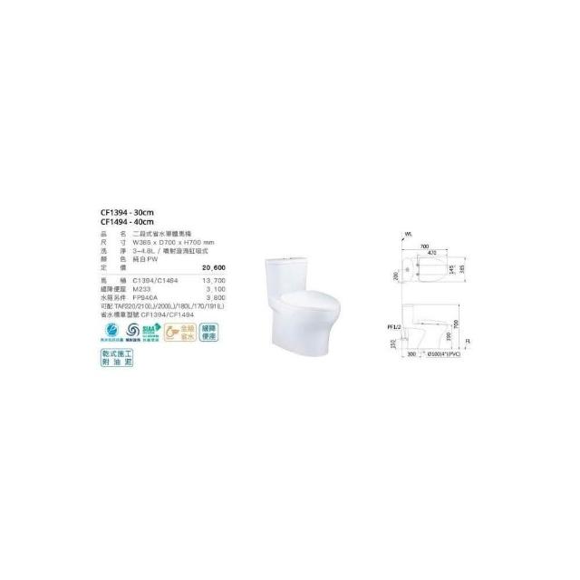 CAESAR 凱撒衛浴圓潤線條型二段式省水單體馬桶CF1394/CF1494(馬桶)