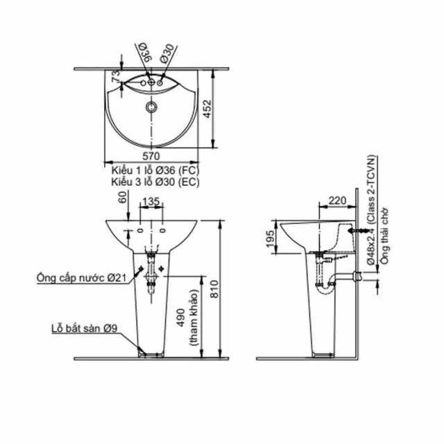 INAX日本伊奈 腳柱型面盆 壁掛式面盆不含龍頭AL-288VFC-TW(面盆)