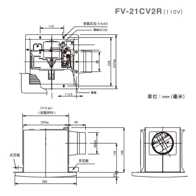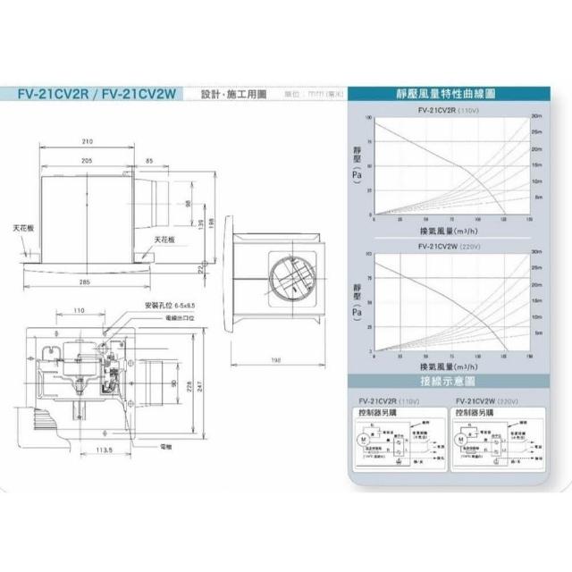 Panasonic 國際牌FV-21CV2R 浴室換氣扇 排風扇 通風扇 110V