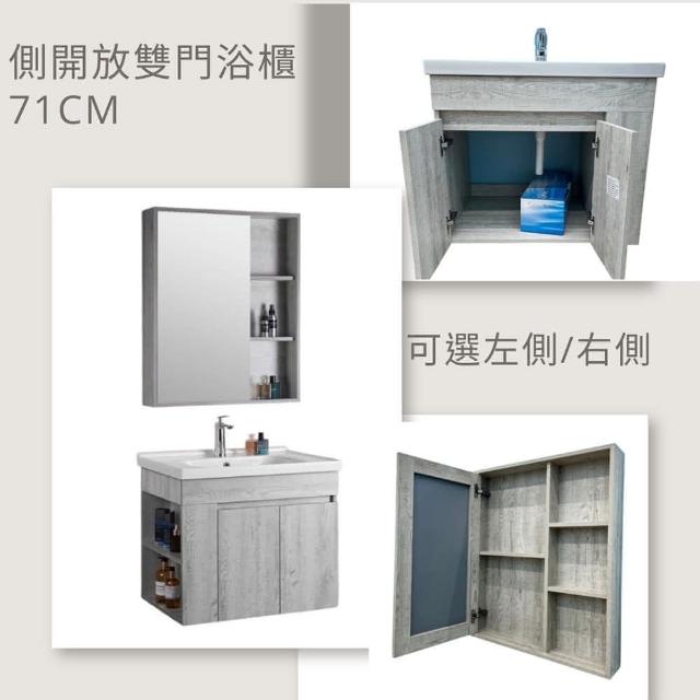 CERAX 洗樂適三件組合衛浴71CM側開放銀河灰雙門浴櫃、單門鏡櫃、單槍冷熱龍頭