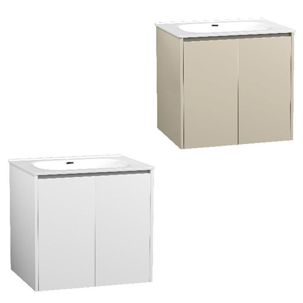 CERAX 洗樂適60公分雙門浴櫃組 白色/奶茶色 發泡板材 防水浴櫃 浴室收納櫃 洗手台 面盆