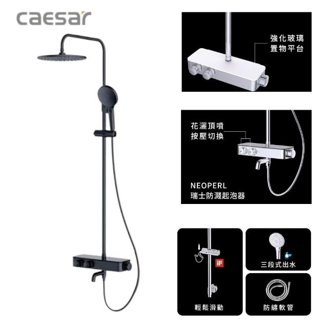 CAESAR 凱撒衛浴恆溫龍頭 控溫花灑 方形置物平台恆溫龍頭 淋浴龍頭 白色/黑色/鍍鉻 S788C