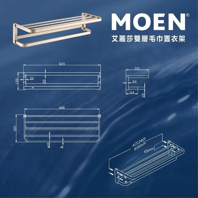 MOEN美國摩恩 雙層毛巾置衣架 鋁合金置物架 衛浴五金配件 金色/玫瑰金 放衣架