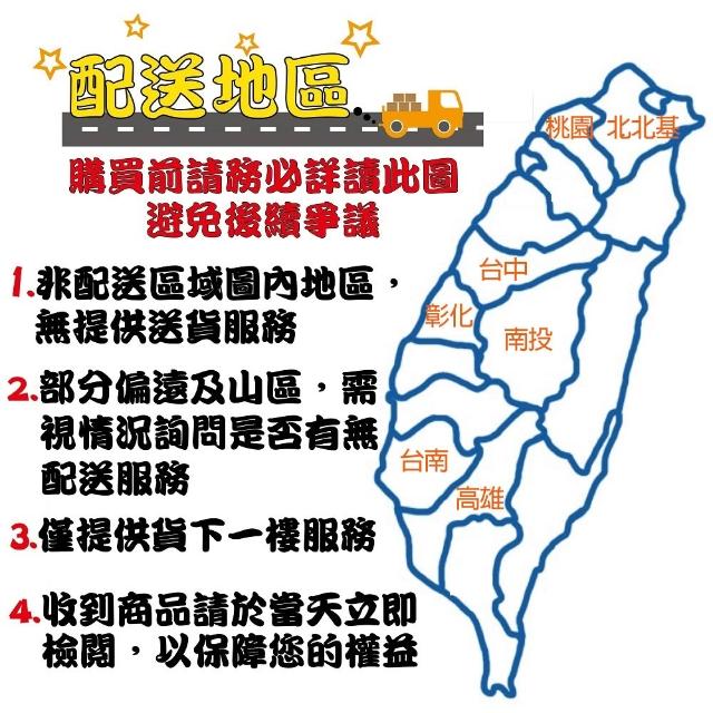 - 針對大型商品(包括:大型家電、家具床墊、健身按摩器材、車類...等),商店將於完成收款確認後,一天內〈不含例假日〉將會有專人與您確認相關配送細節等的聯繫。偏遠地區、樓層費及其它加價費用,皆由商店於約定配送時一併告知,商店將保留出貨與否的權利。