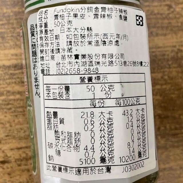 森果食品 大分銅金 青柚子胡椒 日式調味料 柚子胡椒 柚子辣椒