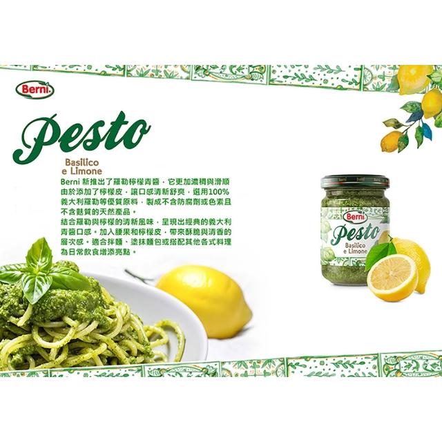 Berni森果食品 羅勒檸檬青醬 麵包抹醬 義大利麵醬 抹醬 麵醬 青醬