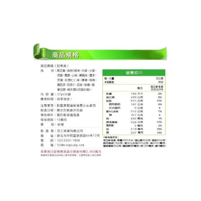 京工養生館京工 黑芝麻糊 30入X1盒(37g/入 沖泡飲品 蔬菜湯 養生 沖泡粥 即食粥 蔬食餐)