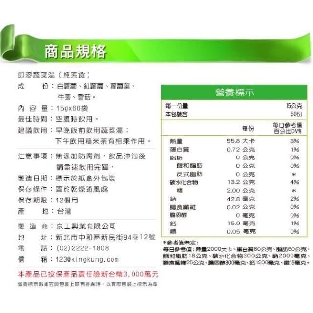 京工養生館京工 正宗蔬菜湯 90入X1盒(15g/入 沖泡飲品 正宗 五行 即溶 蔬菜湯 養生 沖泡粥 即食粥 蔬食餐)