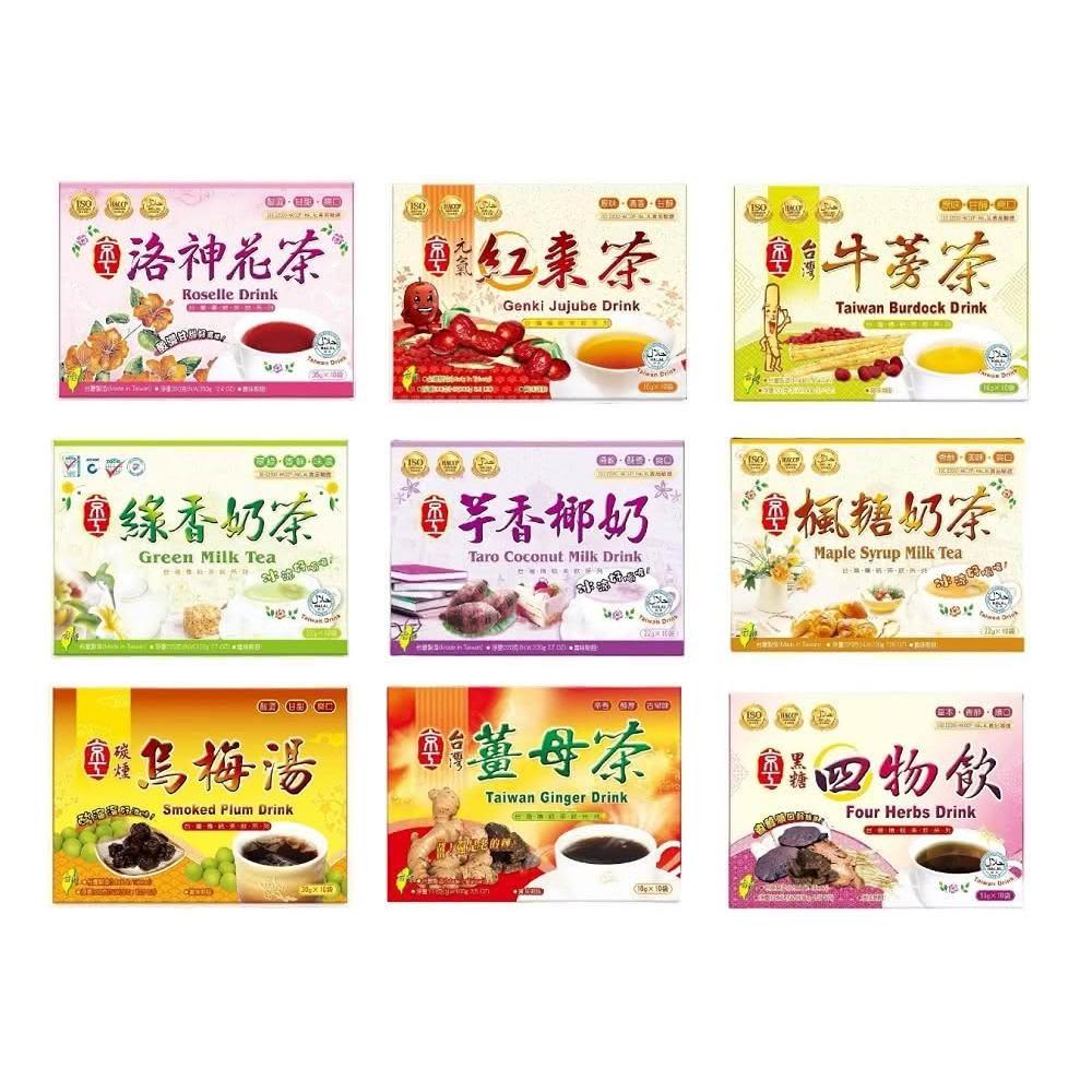 京工養生館洛神花茶 元氣紅棗茶 芋香椰奶 綠香 楓糖 奶茶 黑糖四物飲 碳燻烏梅湯 台灣 薑母茶 牛蒡茶 X1盒(8-10入)