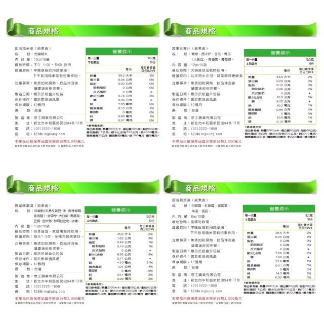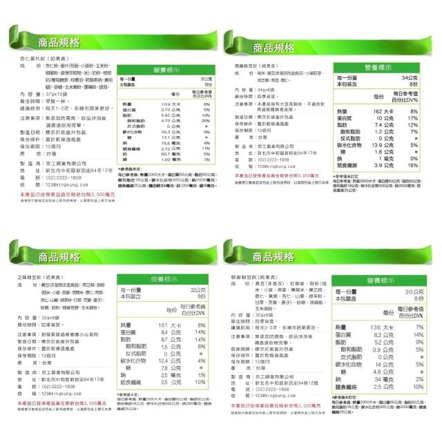 京工養生館藜麥穀豆飲 芝麻穀豆飲 高纖穀豆飲 即溶糙米茶 杏仁麥片飲 即溶蔬菜湯 蔬果五青汁 野菜味噌湯 寒天木耳飲X1盒