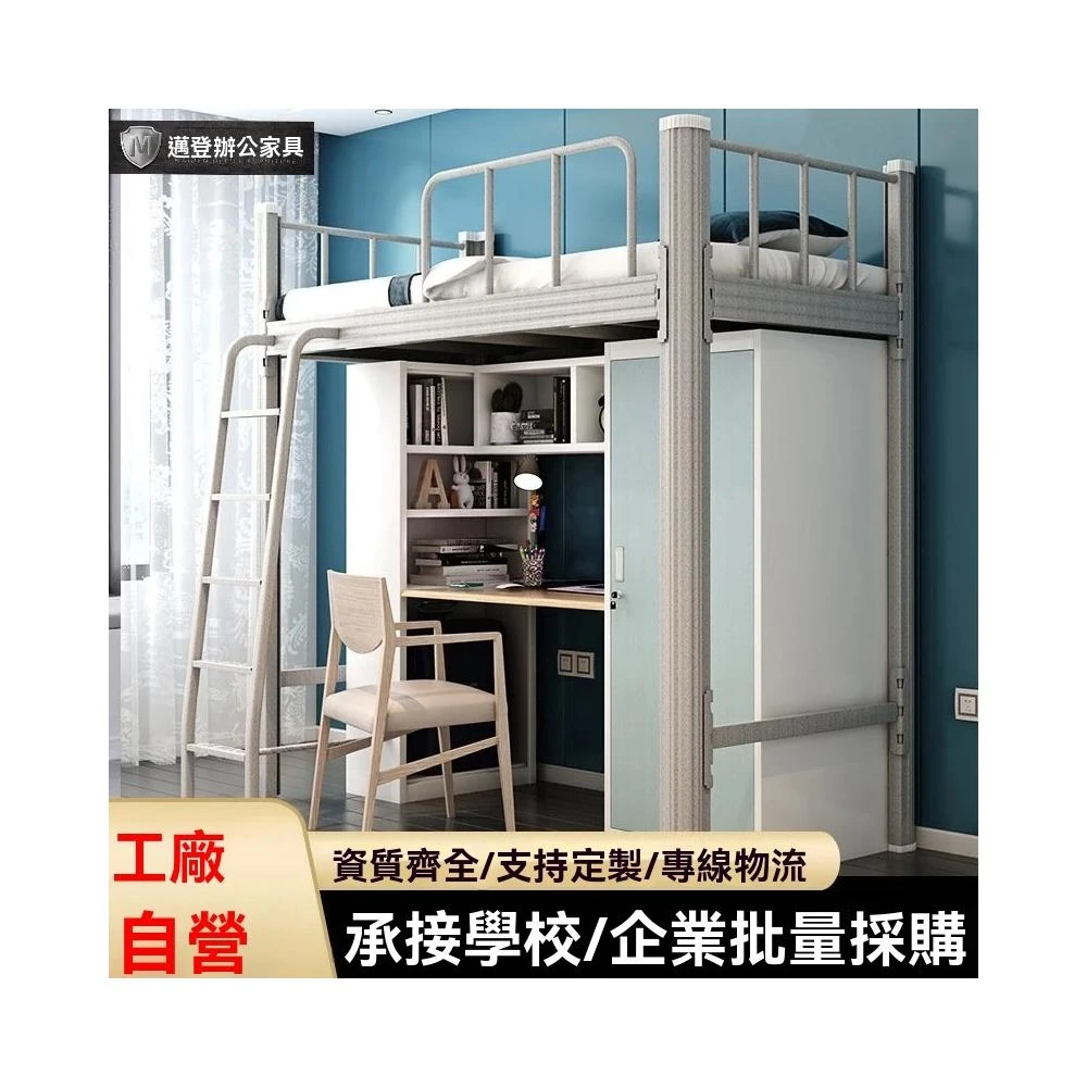 工廠直銷 上床下桌組閤床學生宿捨衣櫃書桌一體鐵架床員工公寓單人床