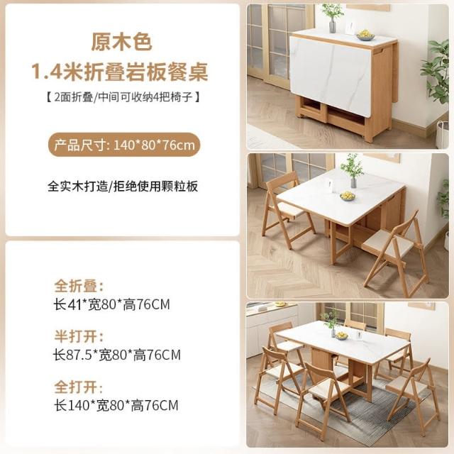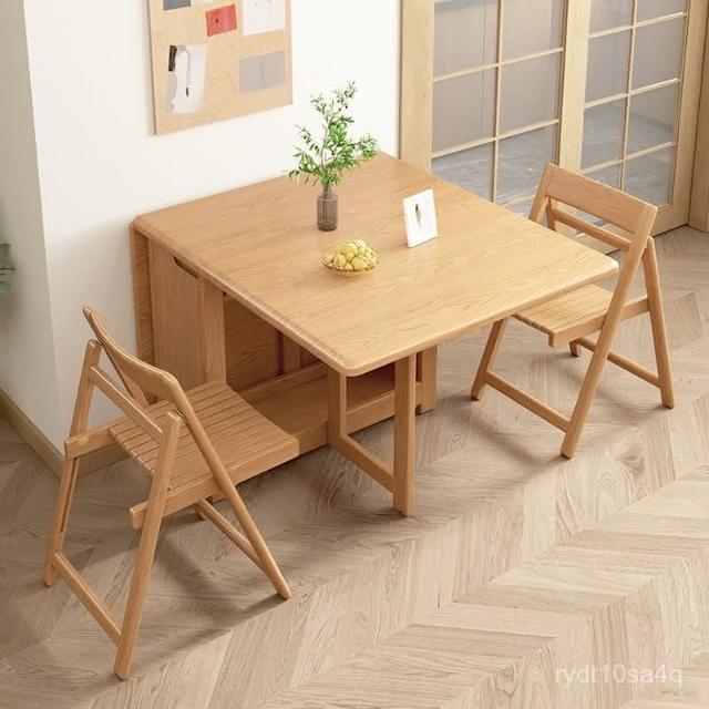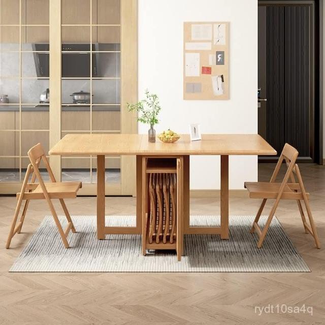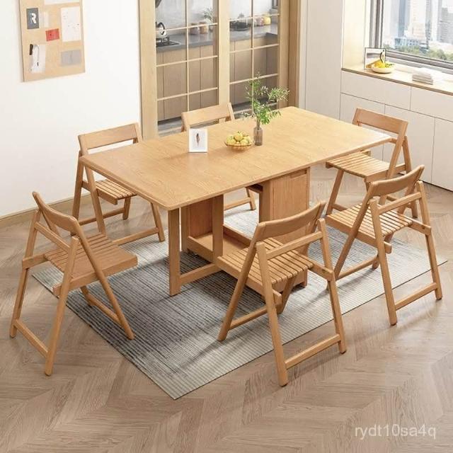 廠商免運 熱銷實木折疊餐桌小戶型家用伸縮飯桌一體餐邊櫃桌子可折疊餐桌椅組閤