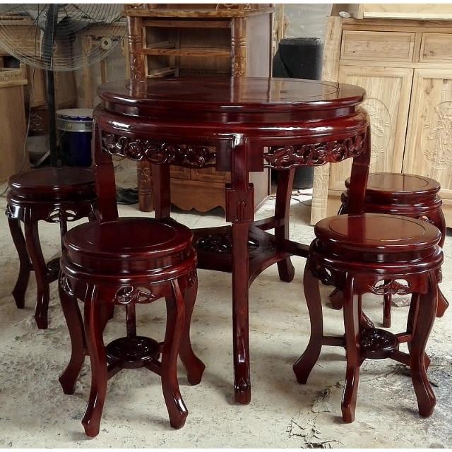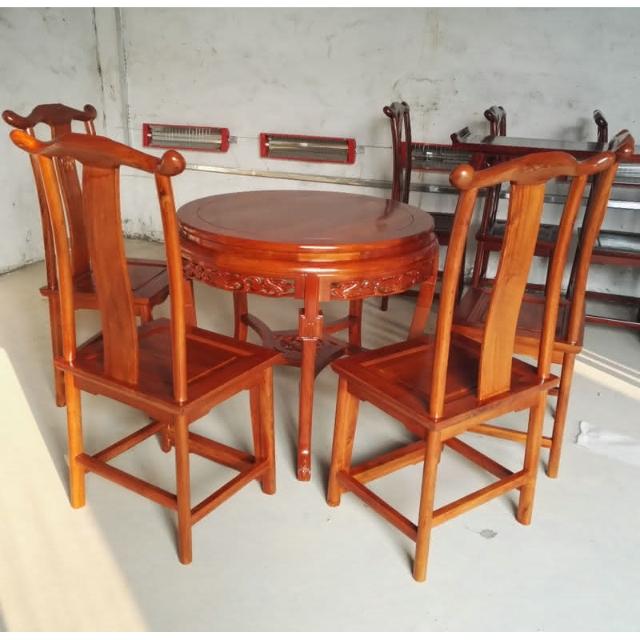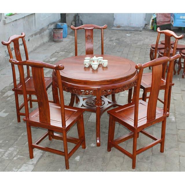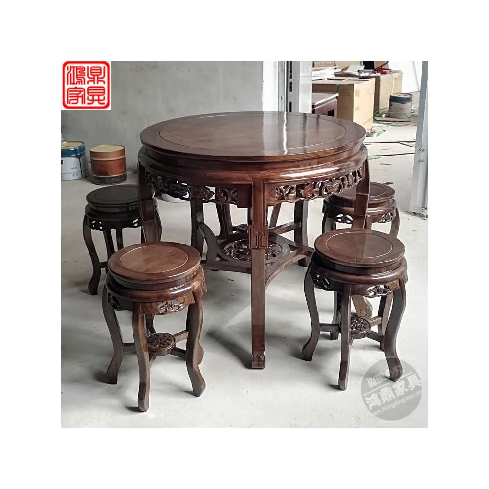 8V實木圓餐桌中式圓桌小戶型家用吃飯桌子老榆木圓形仿古餐桌椅組
