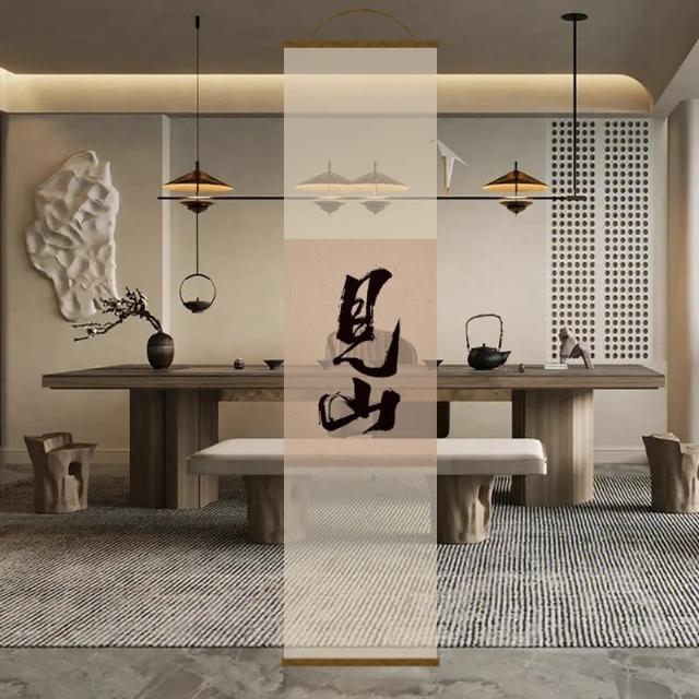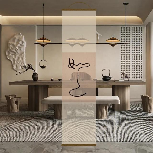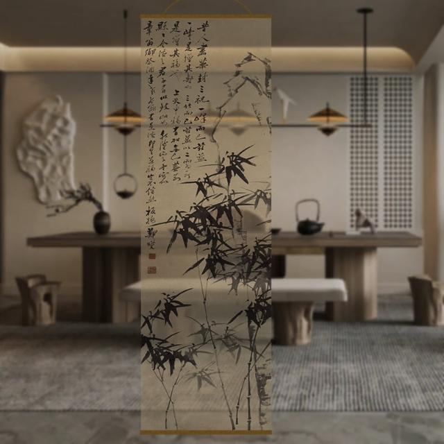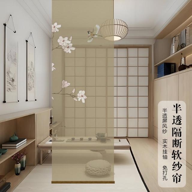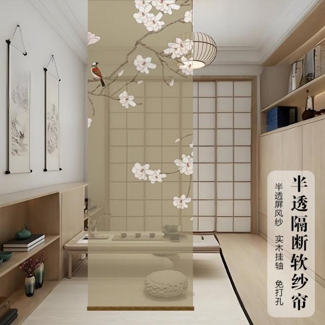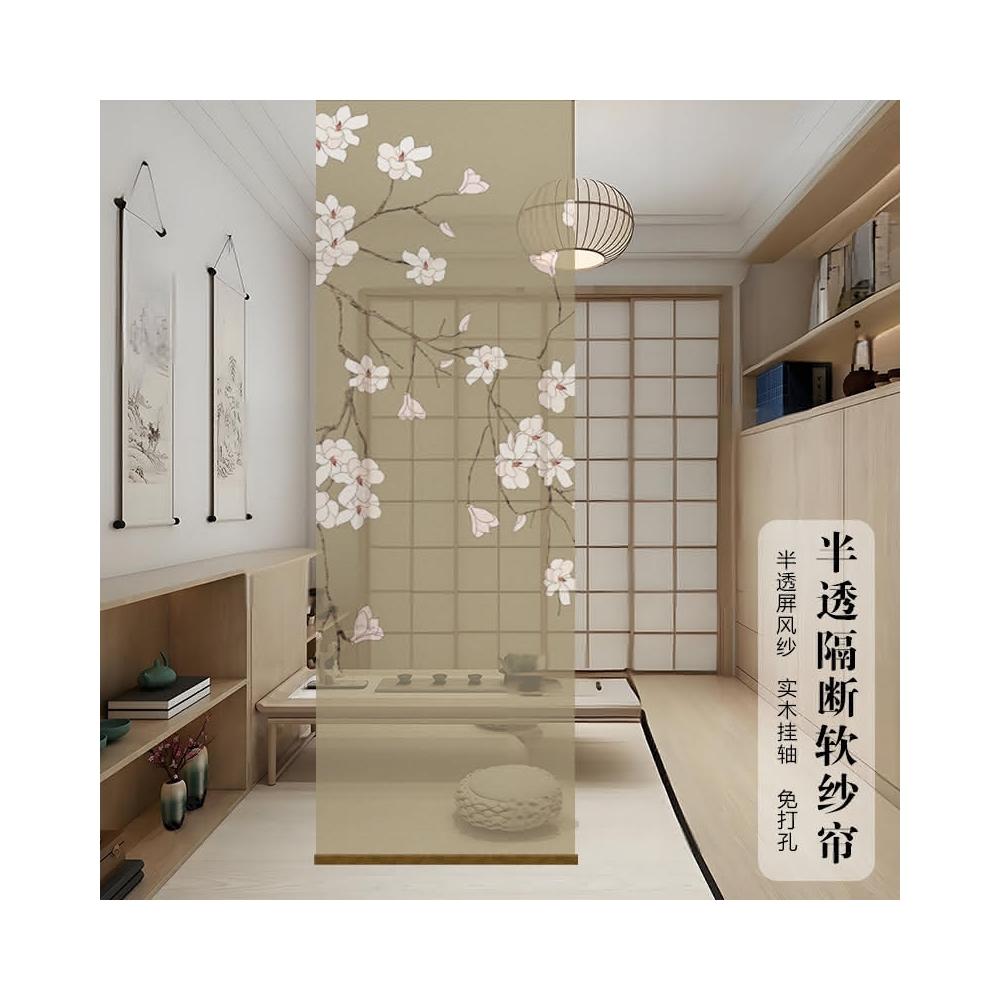 半透明 水墨 雙面透景 屏風紗 中式 卷簾 隔斷簾 掛簾 水墨窗簾 透光紗簾 屏風