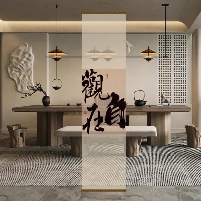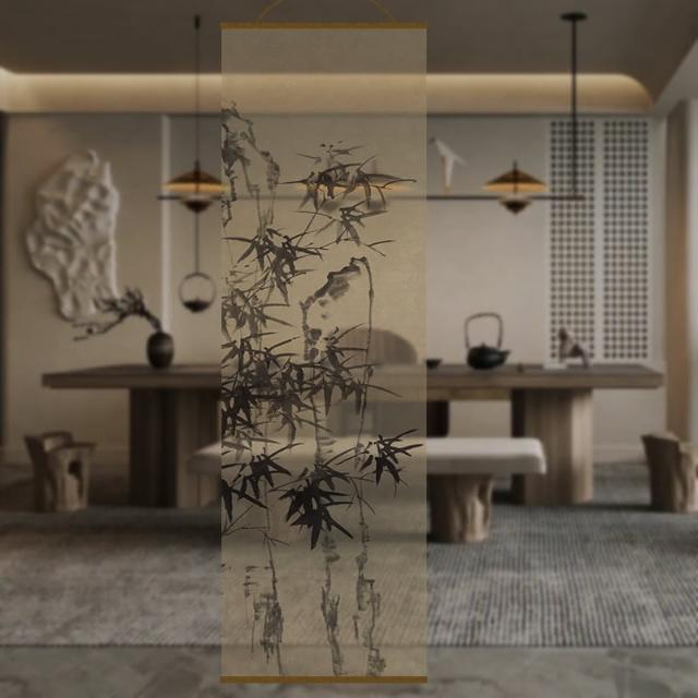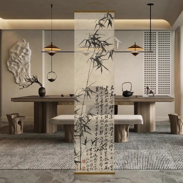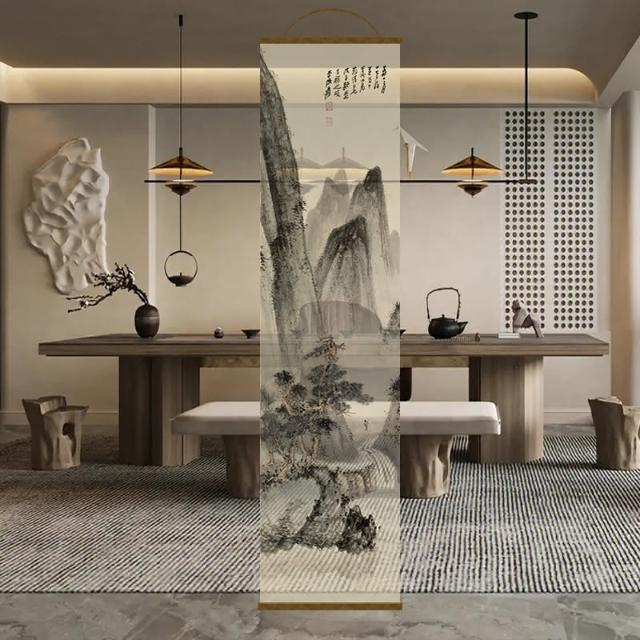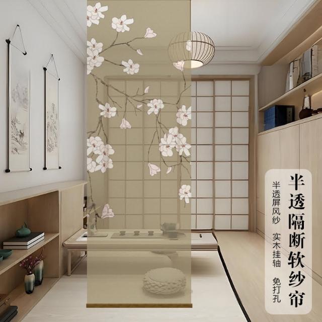 半透明 水墨 雙面透景 屏風紗 中式 卷簾 隔斷簾 掛簾 水墨窗簾 透光紗簾 屏風