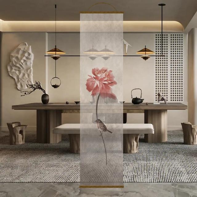半透明 水墨 雙面透景 屏風紗 中式 卷簾 隔斷簾 掛簾 水墨窗簾 透光紗簾 屏風