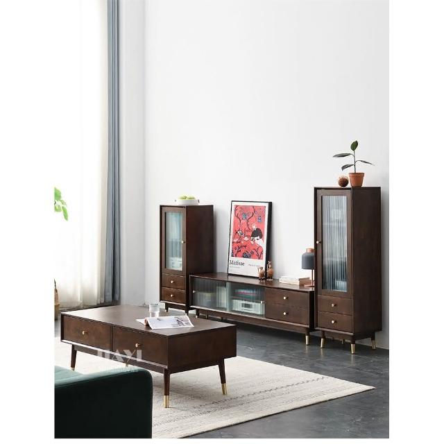 含稅/免運 北歐實木電視櫃茶幾組合現代簡約小戶型客廳輕奢玻璃餐邊櫃酒