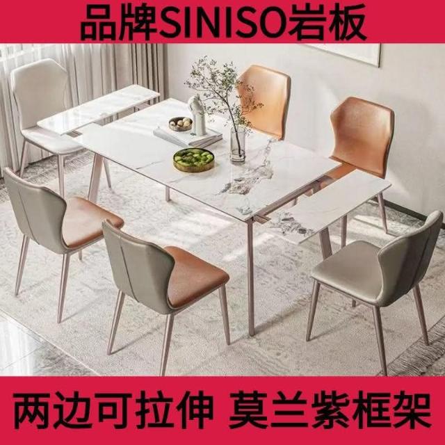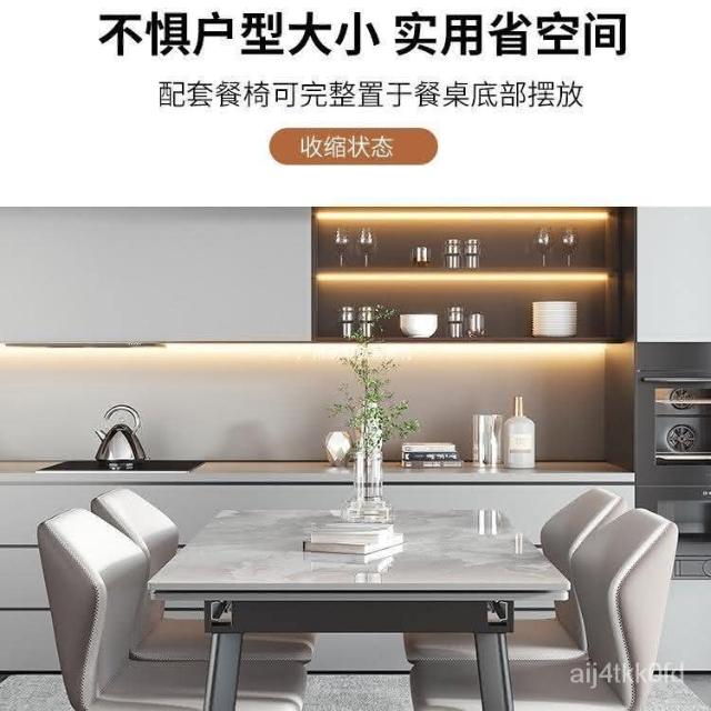 工廠直銷 意式巖闆餐桌可伸縮可折疊可拉伸餐桌現代簡約傢用小戶型長方形桌