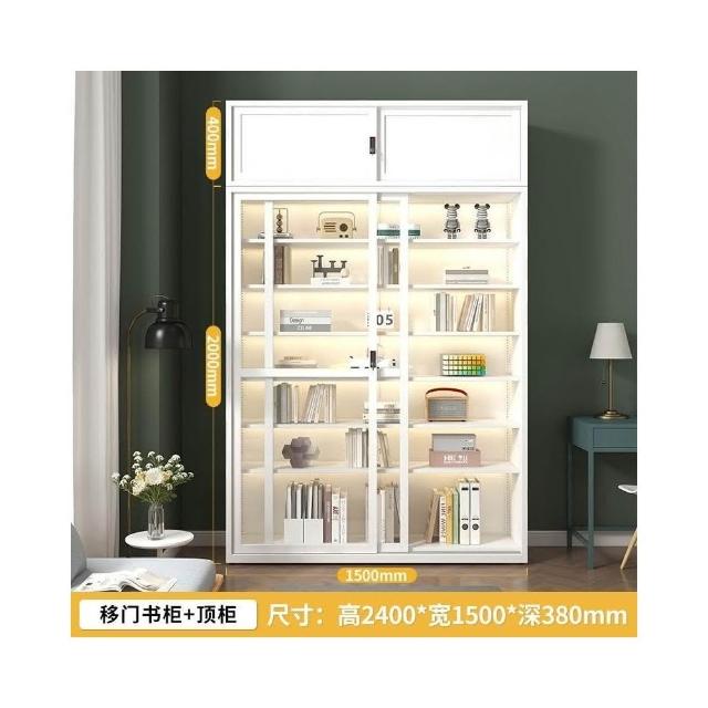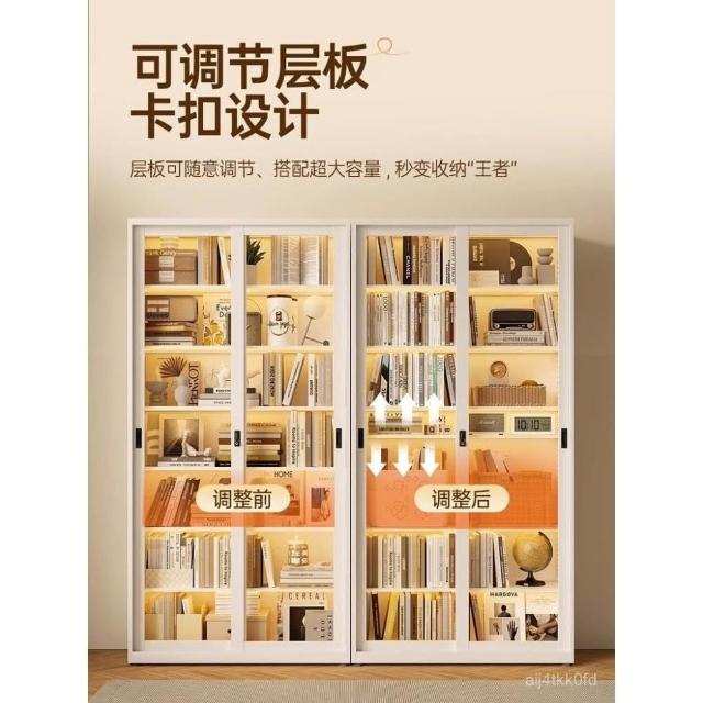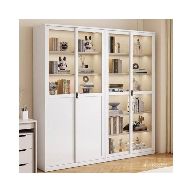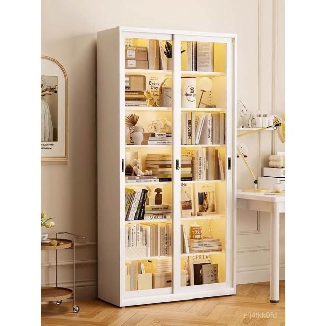 鋼化玻璃移門書櫃 展示櫃 落地推拉門鐵藝收納櫃 玻璃書櫃 鐵皮櫃 落地書架 鋼製書櫃 置玄關櫃