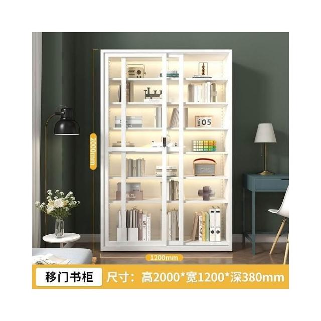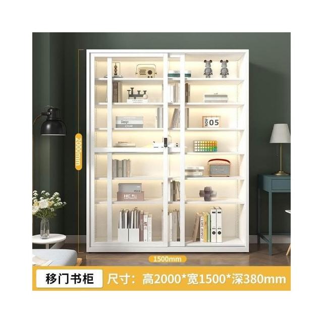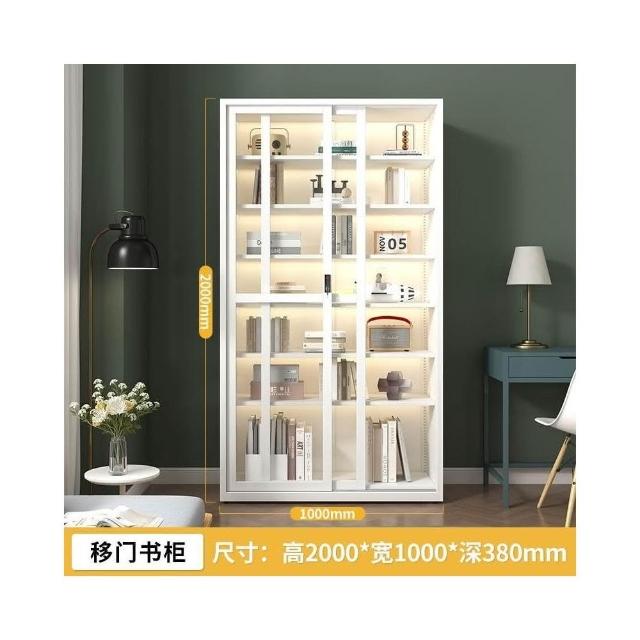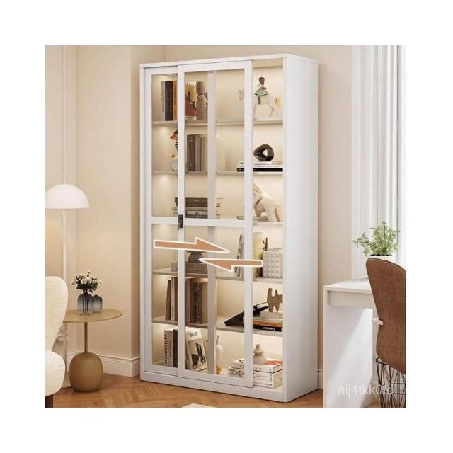 鋼化玻璃移門書櫃 展示櫃 落地推拉門鐵藝收納櫃 玻璃書櫃 鐵皮櫃 落地書架 鋼製書櫃 置玄關櫃