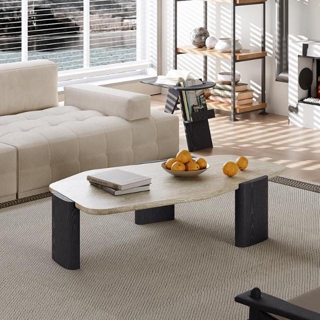 ✨開立發票✨ 日式侘寂風茶几 洞石茶幾 客廳茶桌 現代簡約家用茶桌 創意異形茶桌 大理石復古茶臺 實木茶桌