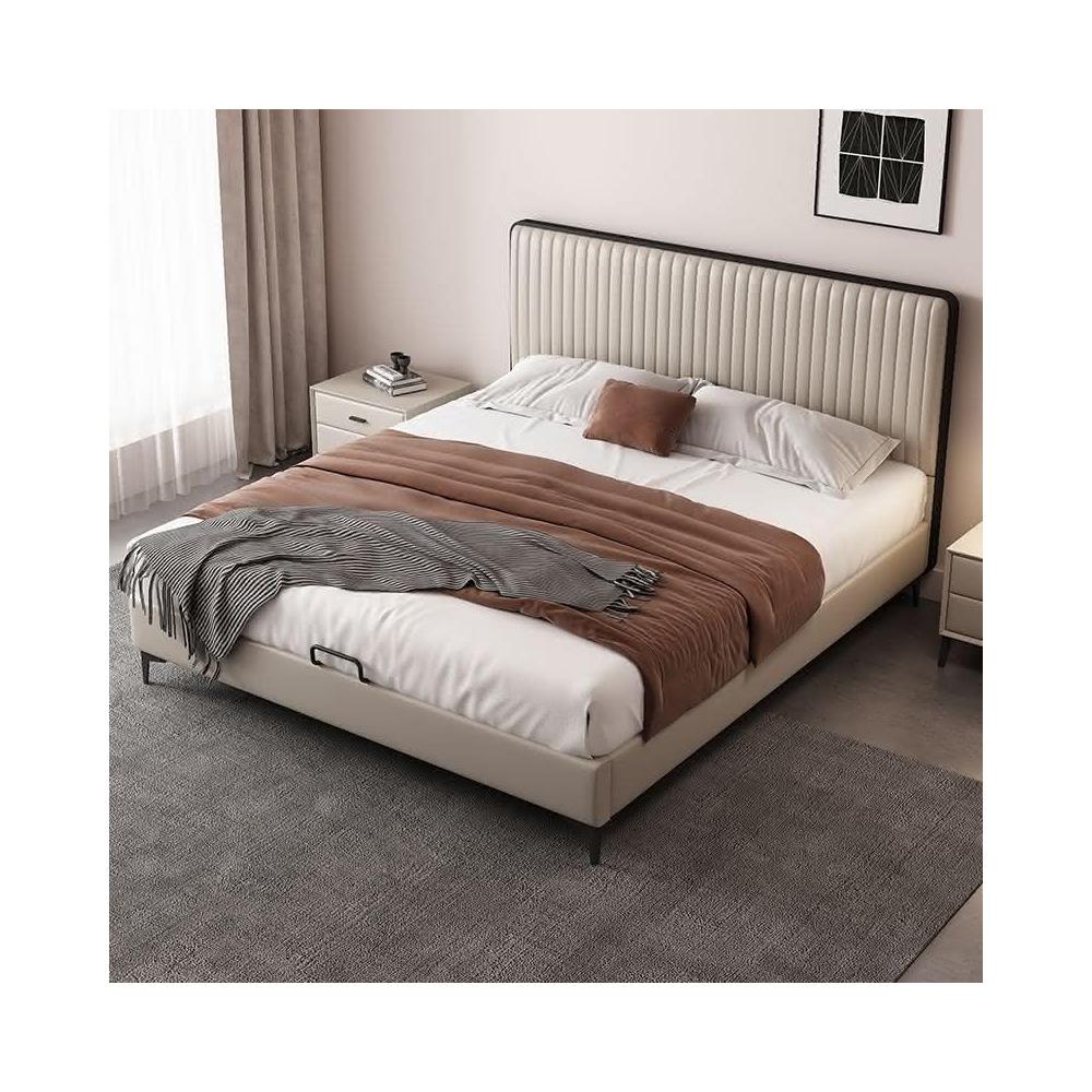免稅免運 超薄床頭床 鋼琴鍵真皮床 現代簡約雙人床 家用軟包床 高級臥室雙人床