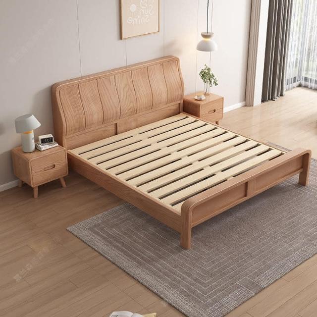 免稅免運 白蠟木實木床 簡約現代床架 雙人大床 主臥家用床架 加厚儲物婚床