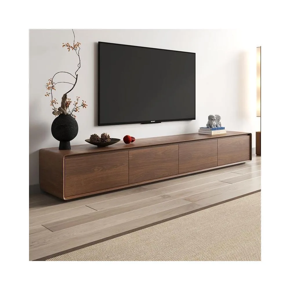 免稅免運 北歐簡約電視櫃 家用客廳電視櫃 胡桃木落地實木電視機櫃